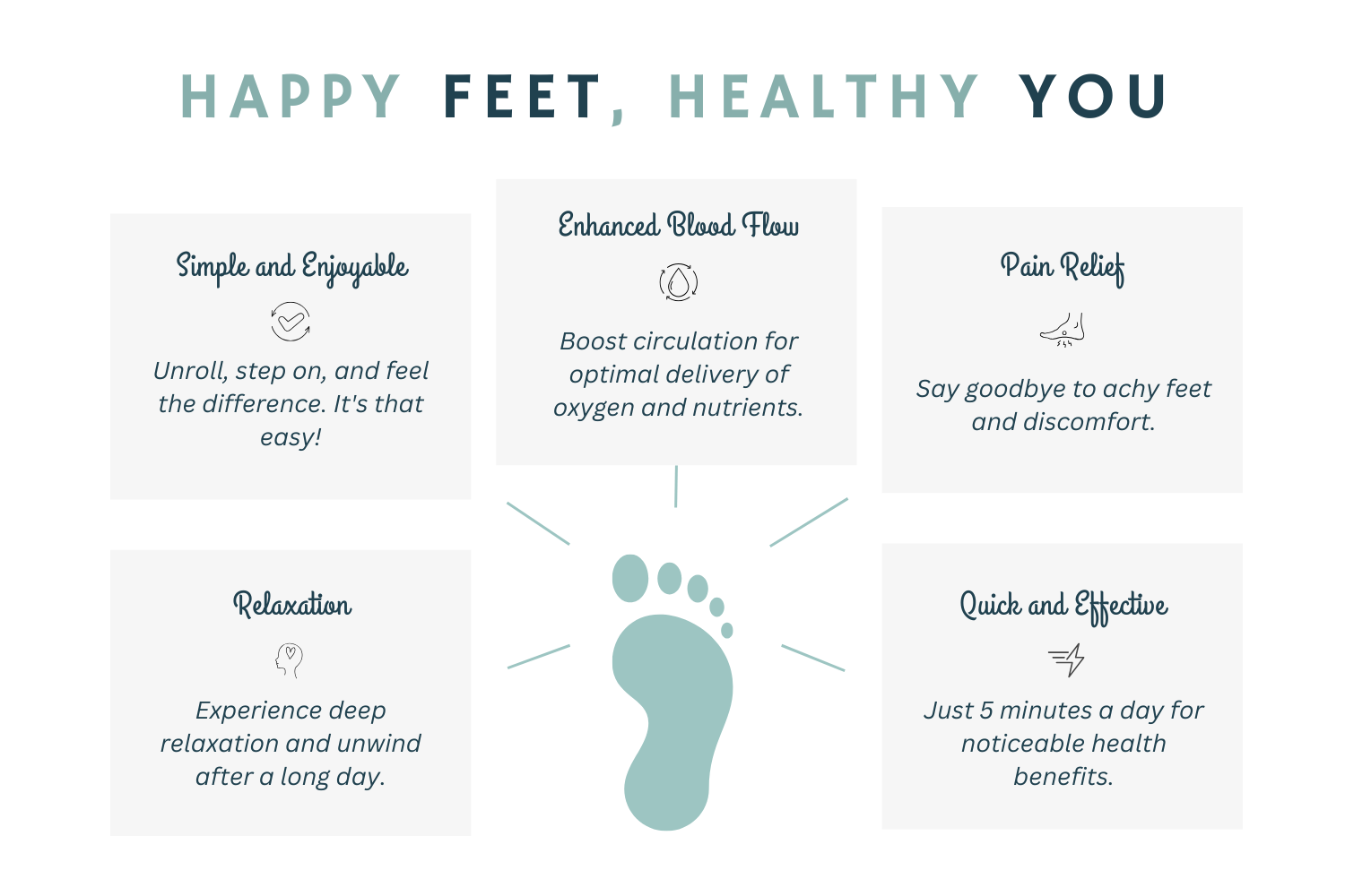 Tikar Akupresur FeetyFirst™ mengaktifkan titik tekanan untuk melegakan ketegangan, meningkatkan peredaran darah, dan memberi tenaga kepada badan anda—hanya berdiri atau melangkah selama beberapa minit setiap hari.