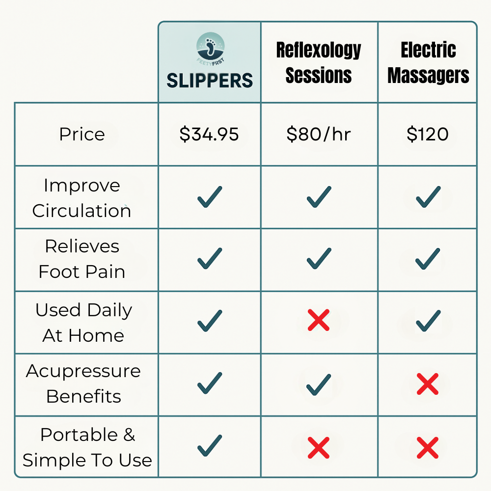 "I use these every morning while getting ready and it’s honestly the best way to start the day. The pressure points hit just right and I feel more awake and less stiff in my legs and feet. Didn’t know slippers could feel this therapeutic!"